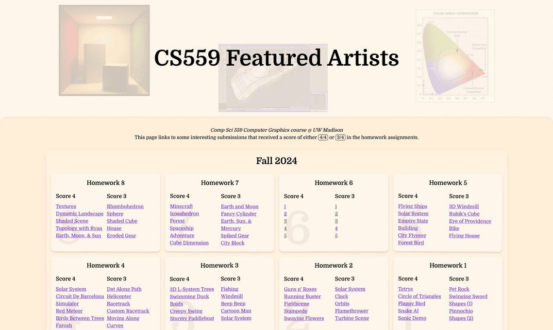 The class project showcase site for CS559: Computer Graphics at UW-Madison.