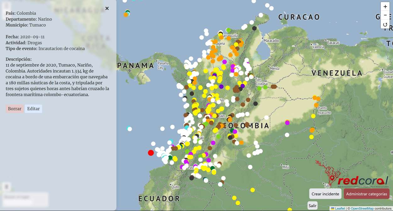 An open-source club project that I led. A web app for a non-profit in South America that filters, sorts, and visualizes crime data on a map, table, and other charts.